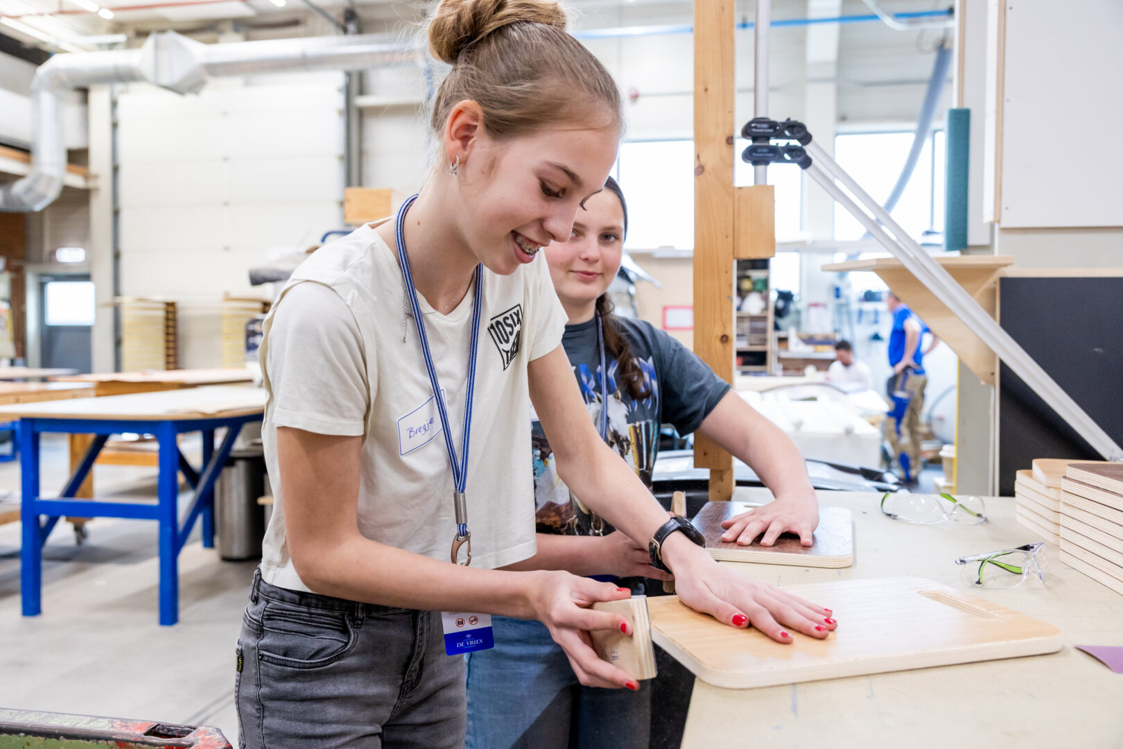 Een van die rolmodellen is Anne Rhodé Burggraaf (21). Zij is opgeleid tot timmervrouw en heeft nu haar eigen klusbedrijf: “Ik had geen rolmodel, op de timmeropleiding was ik zelfs de eerste vrouw in 20 jaar tijd. Maar ik had het wel fijn gevonden om met iemand te kletsen die de zaken net zoals ik ervaart. Die persoon wil ik nu voor meiden zijn, daarom ben ik nu ook leerlingbegeleider.”